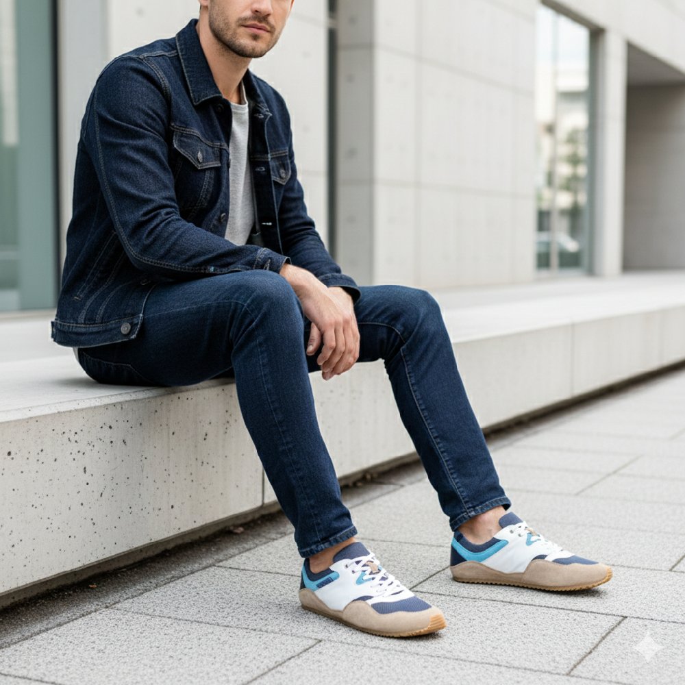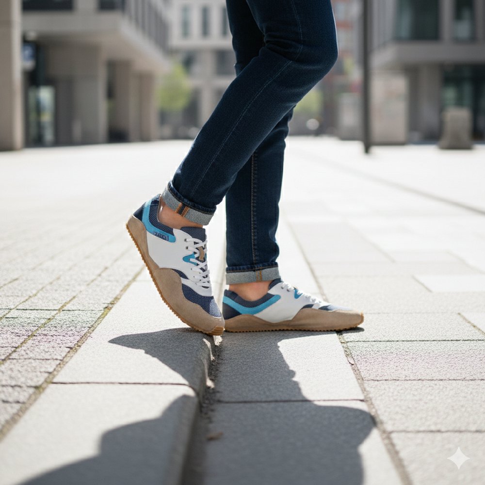 Mit der flachen Sohle, die mit einem leichten Profil ausgestattet ist, läufst Du im Alltag zu Hochtouren auf. ANQO ist Dein fescher Sneaker-Barfußschuh, dem man von außen nicht ansieht, wieviel Komfort in ihm steckt.