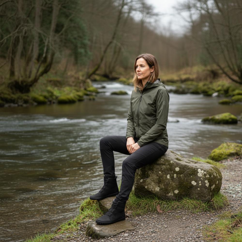 A kültéri gumi talp nulla sarkú sarokával, enyhítve a gerinc és az ízületek védelmét, támogatja a természetes testtartást