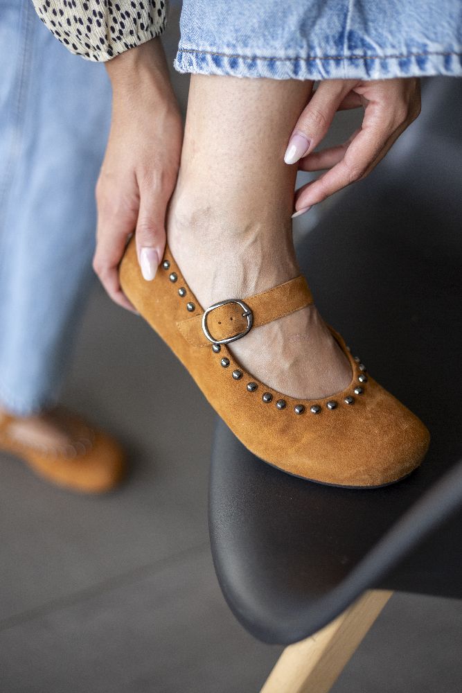 A Dieqo Brownunk a vadonatúj balerin cipőnk, amely barna velúrból készült. Ezt az ékszerdarabot kerek szegecsekkel bélelték, és minden ruhát glamour -t adnak, anélkül, hogy elhagynák a hihetetlen kényelmet, amelyhez szokott cipőnk.