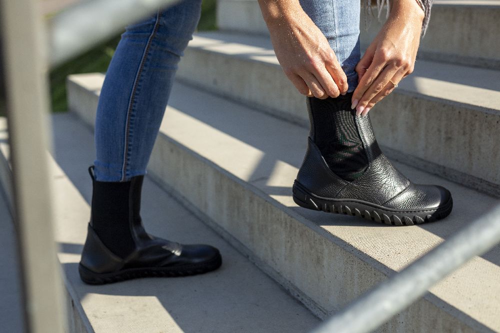 Ezek a csizmák egyesítik a mezítláb cipők kényelmét a klasszikus Chelsea csizmák félreérthetetlen stílusával. Elegáns fekete színben tartva és nagy minőségű nappa bőrből készült, és nemcsak luxus kopási érzést, hanem tartósságot is kínálnak.