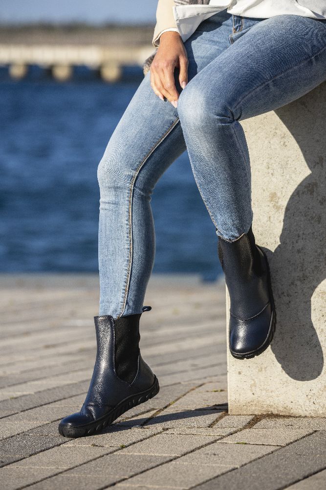 Ezek a csizmák nemcsak egy szemfogadó, sötétkék prémium nappa bőrben, hanem kényelmes bevezetést és optimális illesztést is kínálnak a tengely mindkét oldalán lévő fekete elasztikus betéteknek. A formatervezés egyszerű, de elegáns, és ezeket a csizmákat ideális partnerré teszi minden alkalmi megjelenéshez.