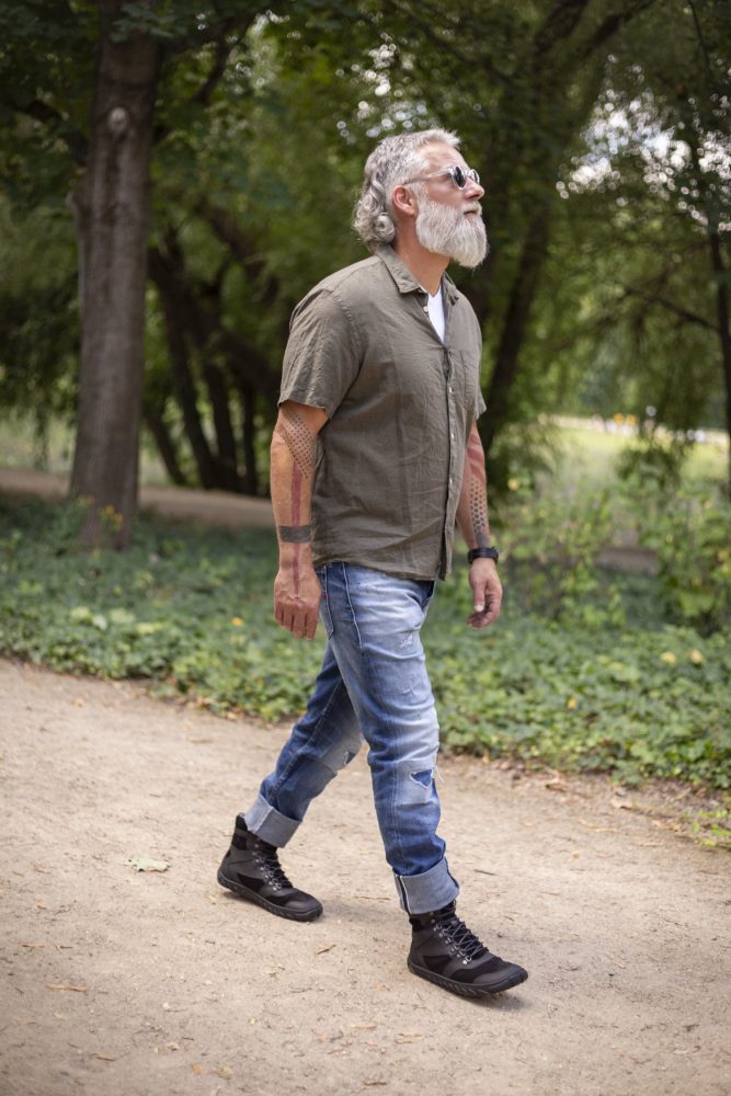 - A kültéri gumi talp nulla sarkú sarokával, enyhítve a gerinc és az ízületek védelmét, támogatja a természetes testtartást