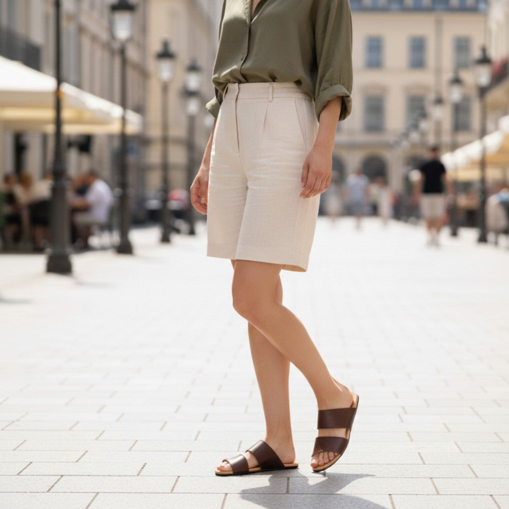 Lágy, barna nappa bőrből készültek, ezek a szandálok időtlen megjelenést kínálnak, amely könnyen kombinálható különböző ruhákkal.