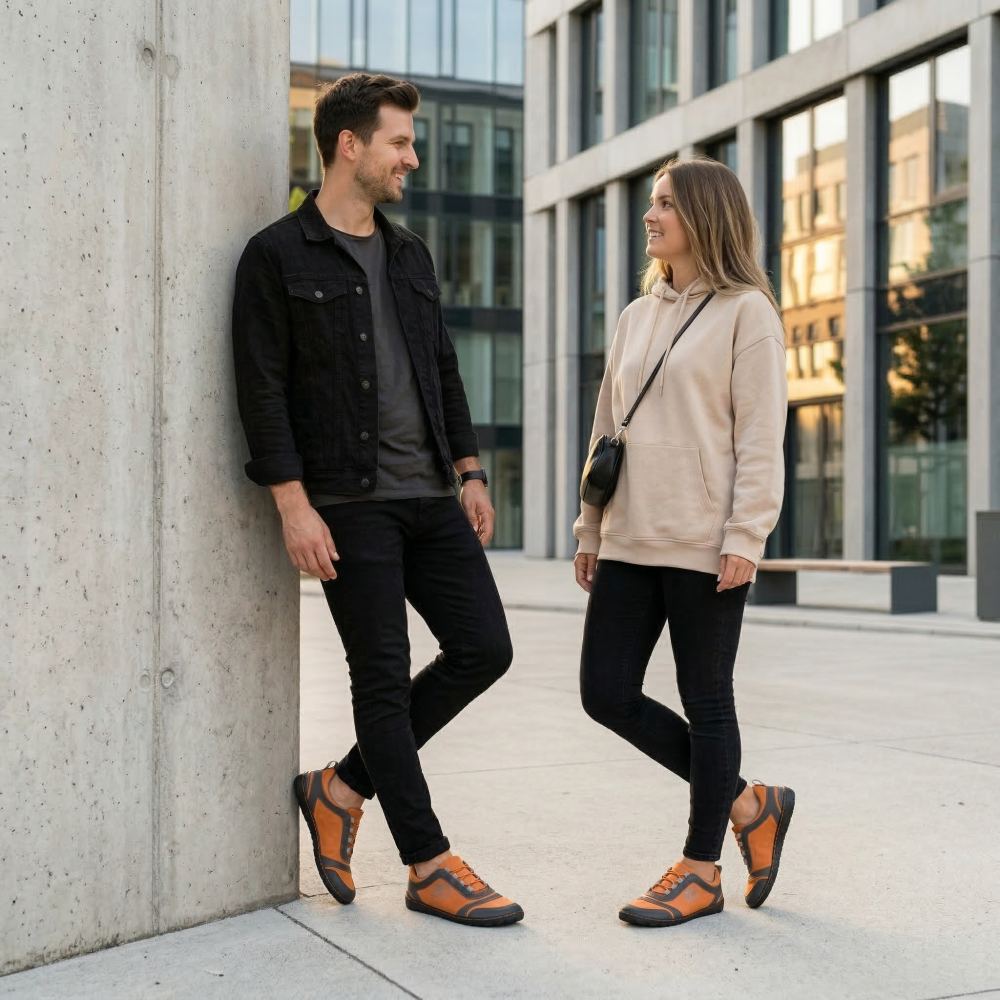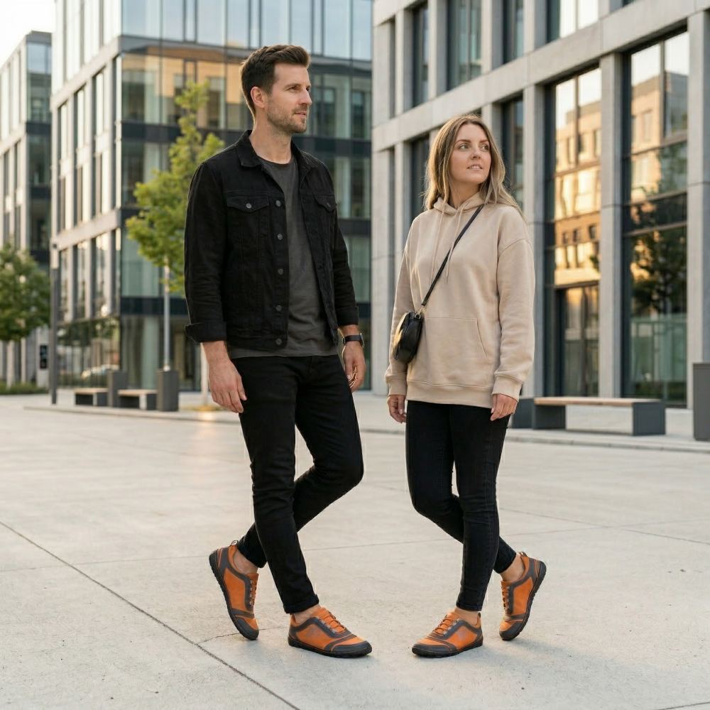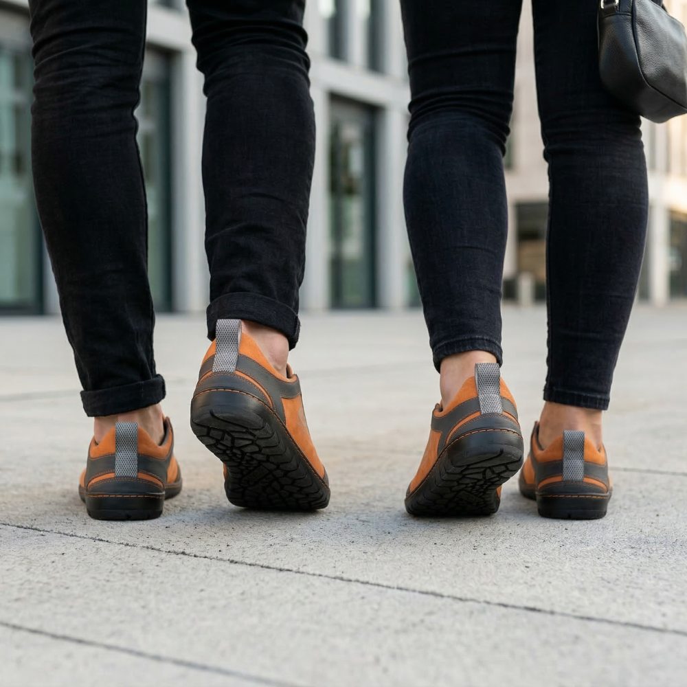 A kültéri gumi talp nulla sarkú sarokával, enyhítve a gerinc és az ízületek védelmét, támogatja a természetes testtartást