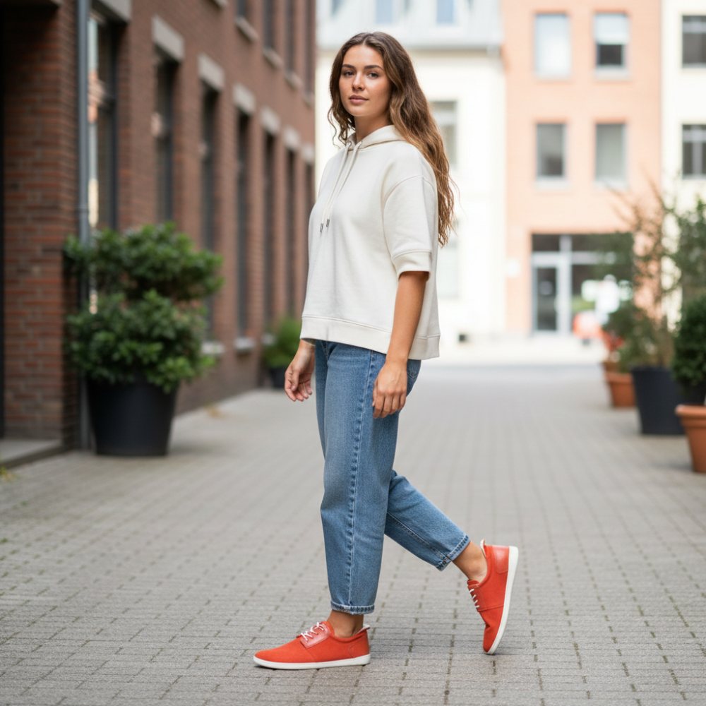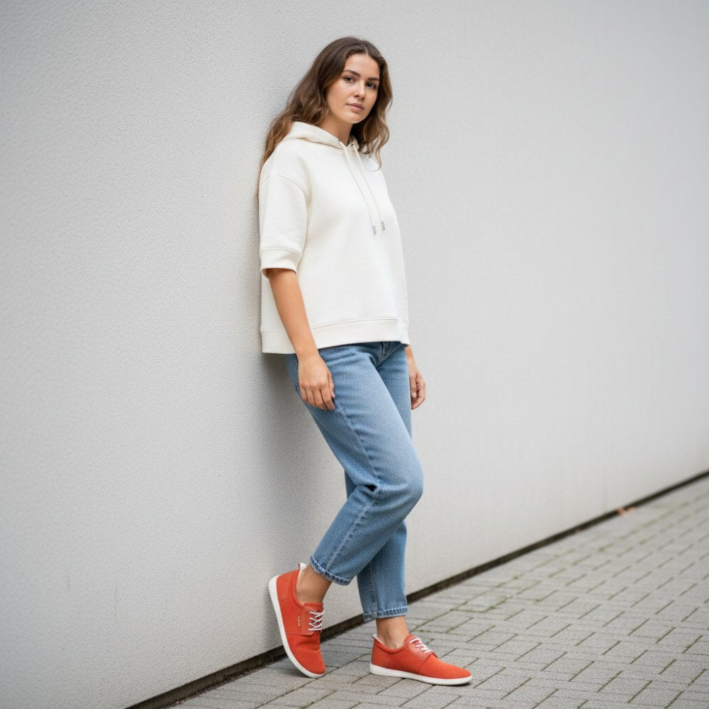 A mezítlábcipőben minden nagy minőségű anyagból készül, és természetesen kézzel varrott. A fehér színben a vékony és nagyon rugalmas talp szép kontrasztot kínál a feltűnő narancssárga hangon. A mezítláb cipő frissnek és modernnek tűnik, és minden ruhát fűszerez. Csak ellenállhatatlannak tűnik a farmer számára, és felhívja a figyelmet önmagára. Ez nem pikáns, mint a végrehajtási opálnál!