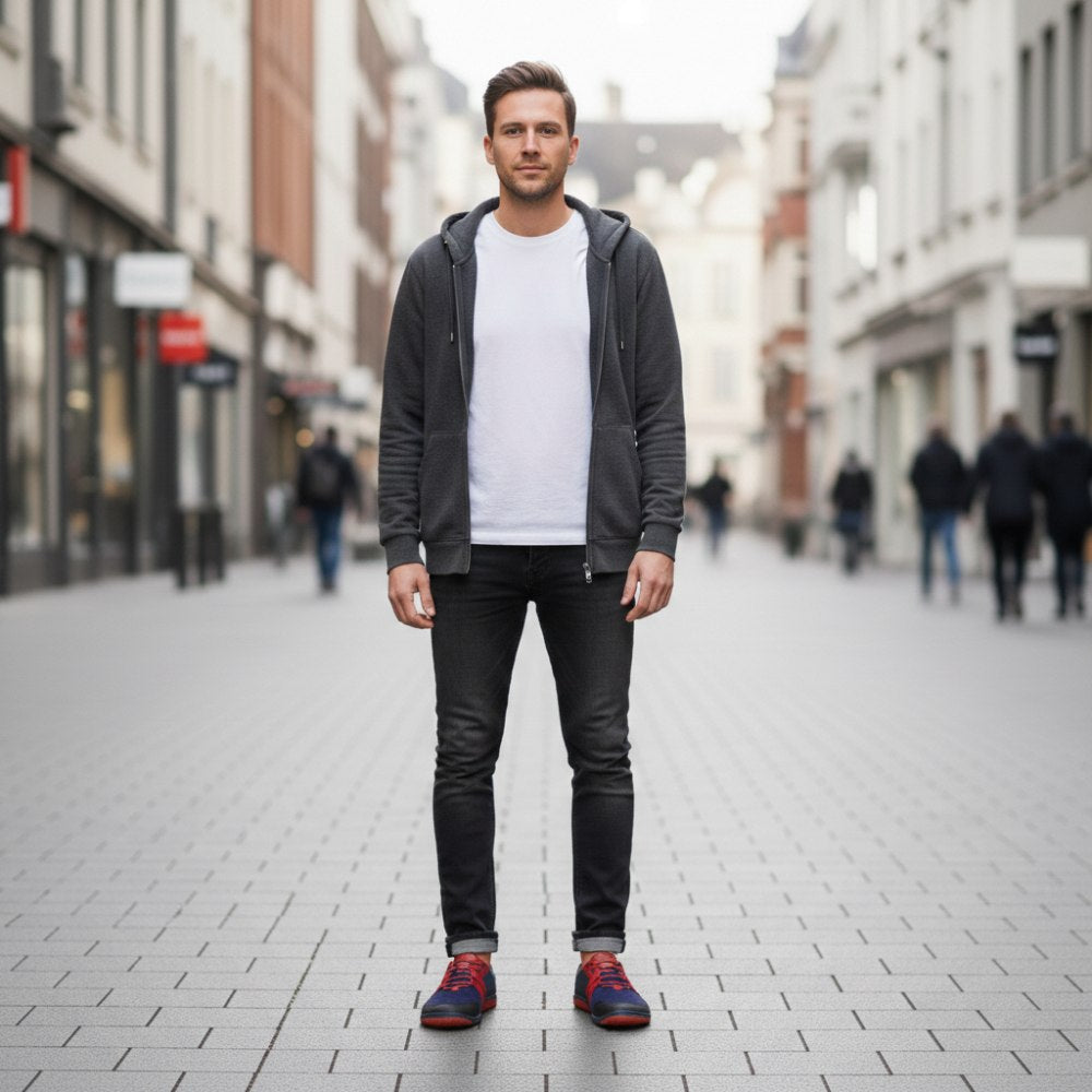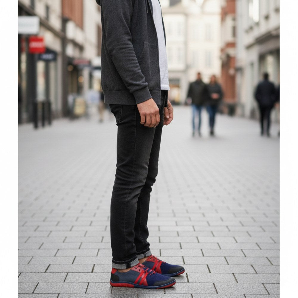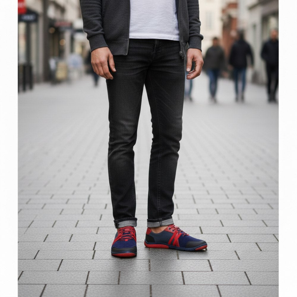A Qarlton Blue esetében kiváló minőségű anyagok és különböző színek vannak tökéletesen koordinálva. Az eredmény egy ultramoder mezítláb cipő a férfiak számára.