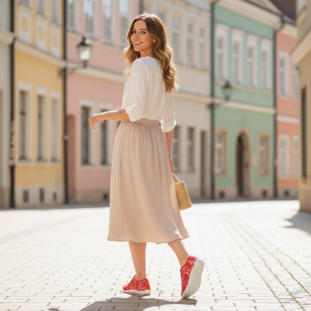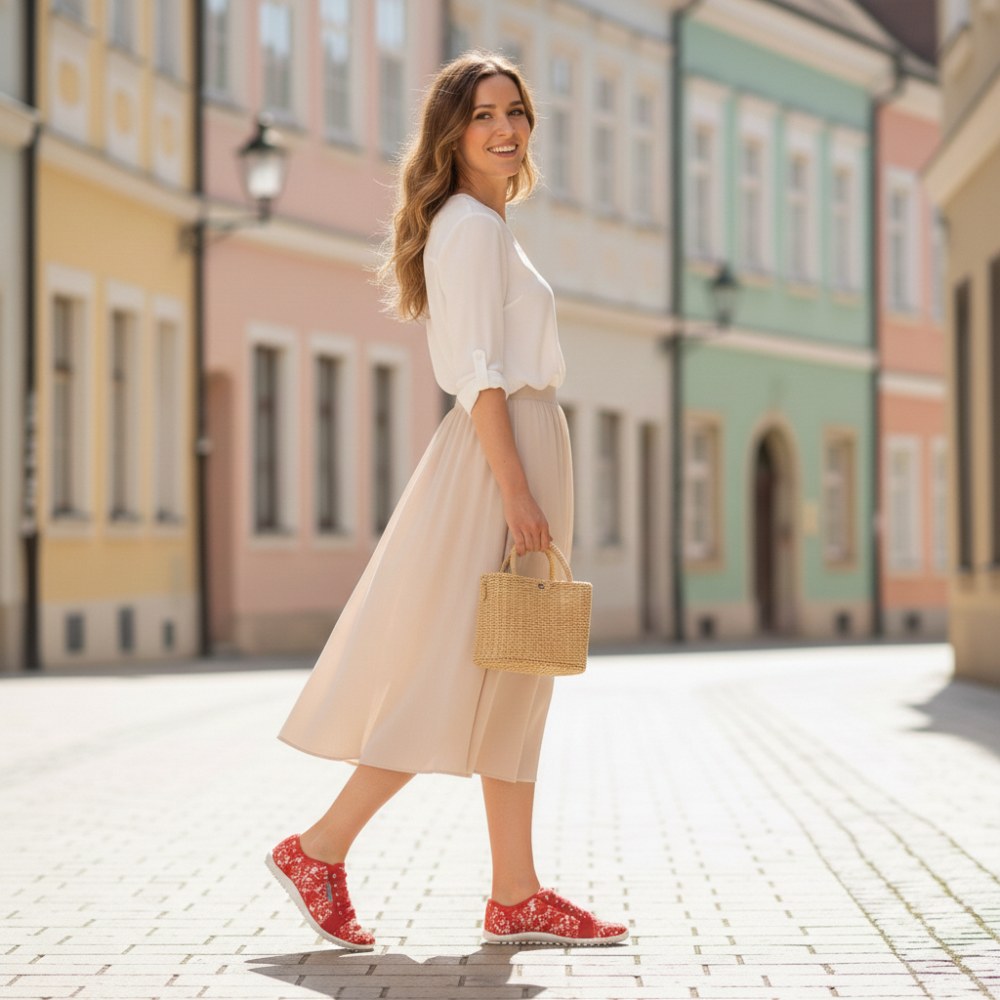A Qelly Red a tökéletes mezítláb cipő minden olyan nő számára, aki elegáns szemfestőt keres, és minden rendeltetési helyhez kényelmesen akar jönni.