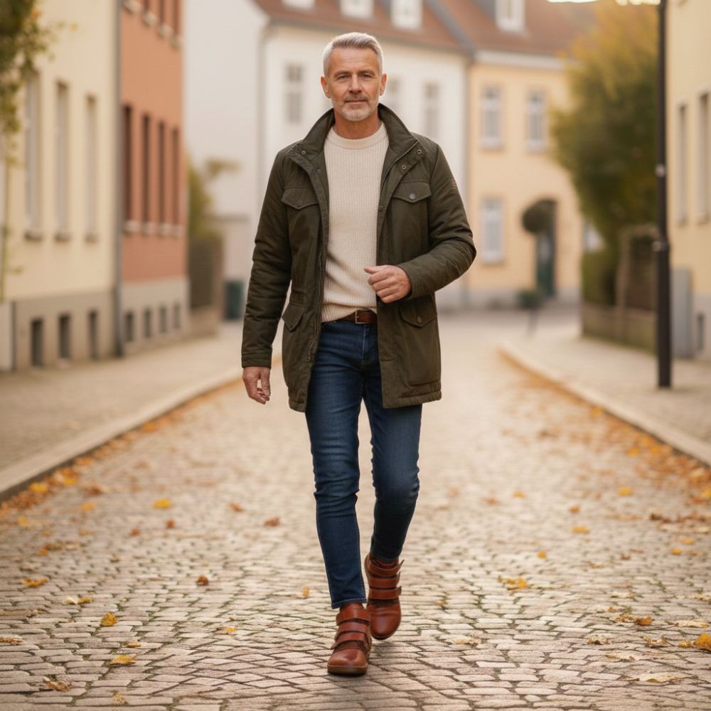 A kültéri gumi talp nulla sarkú sarokával, enyhítve a gerinc és az ízületek védelmét, támogatja a természetes testtartást