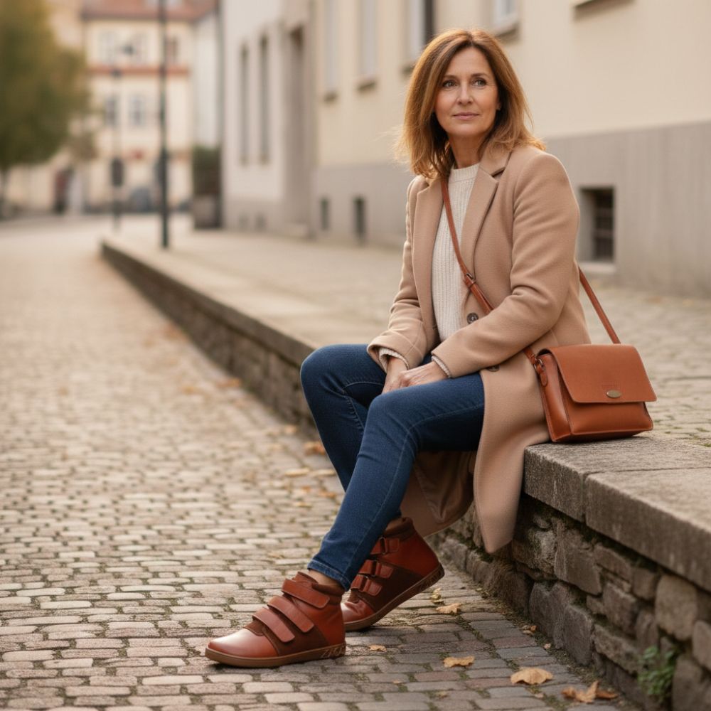 A Qooper a félig magas mezítláb cipő, amely különösen nemesnek tűnik barna bőrének köszönhetően, és egyszerűen hihetetlenül kényelmes a gyakorlati tépőzáras rögzítőelemnél.