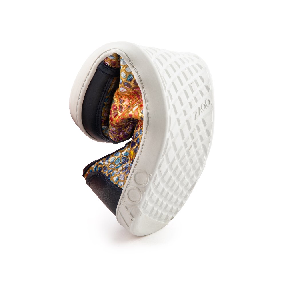 Nagy minőségű nappa bőrből készült, színes virágmintával és eltolás részletekkel sötétkékben, ez a mezítláb cipő abszolút szemfogadó! De ez a cipő szintén fenomenális a lábad számára - sok helyet kínál a lábujjak számára, és ugyanakkor biztonságos a boka.